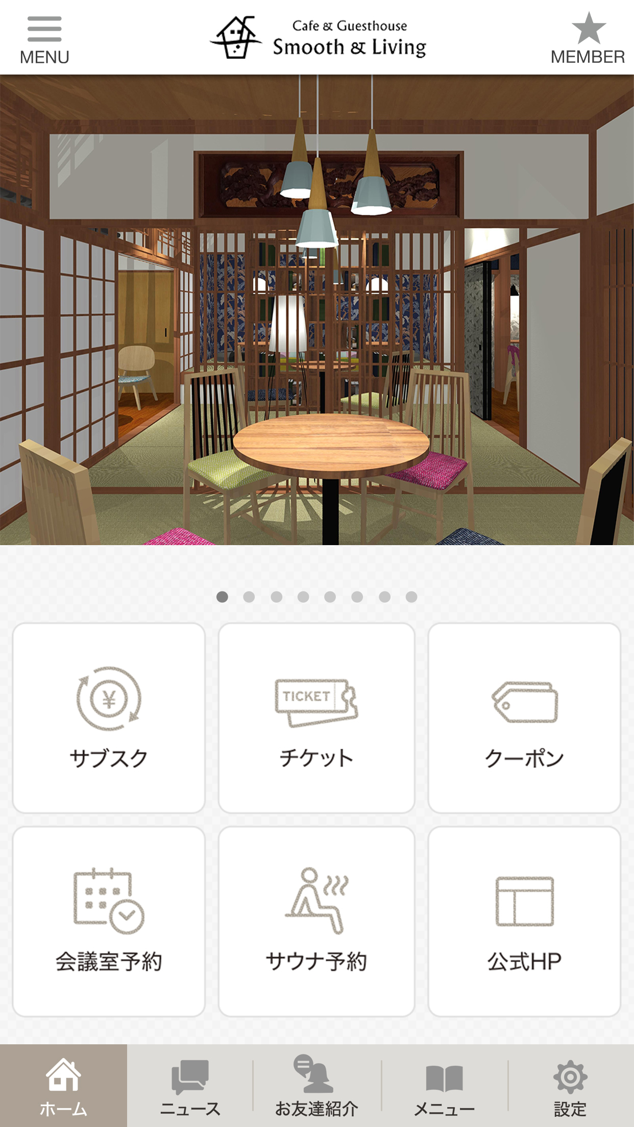 信州最古の温泉地・別所温泉にある和風+北欧テイストの落ち着いた古民家カフェです。コーヒーはセルフ形式によるフリードリンク、フルーツや野菜の美味しさいっぱい・東京青山のスムージー、サブスク制のご利用で使い放題など新しいコーヒーの楽しみ方と温泉街のご滞在を提案します。店内には会議室を設け、外にはテラスがあるなど、ワーケーションなどにも最適。2階は和室とドミトリーの客室を備えたゲストハウスがあり、シンプルなご滞在やリーズナブルに別所温泉に宿泊したい方に最適です。 » Smooth & Livingの公式ホームページはこちら